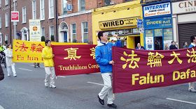 游行结束后,在奥康诺大街举行新闻发布会。法轮大法协会戴女士表示:“大法洪传十五年以来,一亿多人通过学习法轮大法的法理,身体和心灵都得以净化。我们爱尔兰法轮大法学员有西方学员也有中国学员,在今天这个特别的日子里庆祝法轮大法日,同时也表达我们特别感恩的心情。也希望所有人和我们一样能在修炼大法的过程中生命得到净化,最后能够返本归真。”