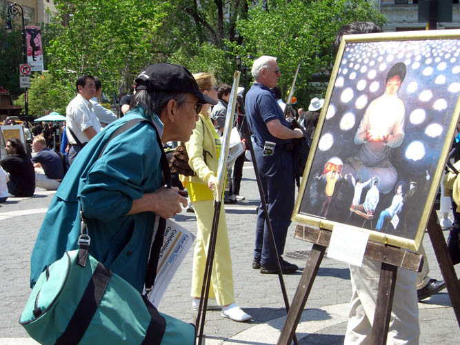 在庆祝活动现场,法轮功学员展出多幅修炼法轮功的艺术家创作的美术作品,很多过往行人驻足观看。同时向纽约人派发真相报纸,很多人都愿意接受。纽约居民德麓斯(Deluce)说,曾经听说过中国的法轮功修炼和迫害情况,从这些画作中才真切感到迫害的严重。活体摘取器官这种惨剧实在令人难以接受,这些场景可能会出现在将来类似《辛德勒名单》的影片中。