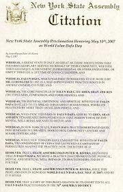 纽约州议会公告褒奖二零零七年五月十三日为世界法轮大法日