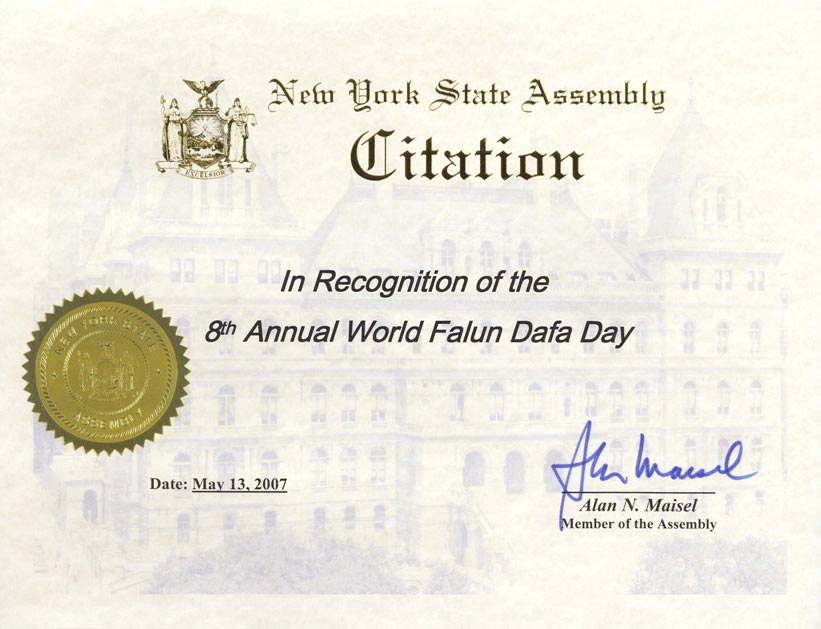 艾兰•梅赛尔(Alan N Maisel)州议员二零零七年五月十三日