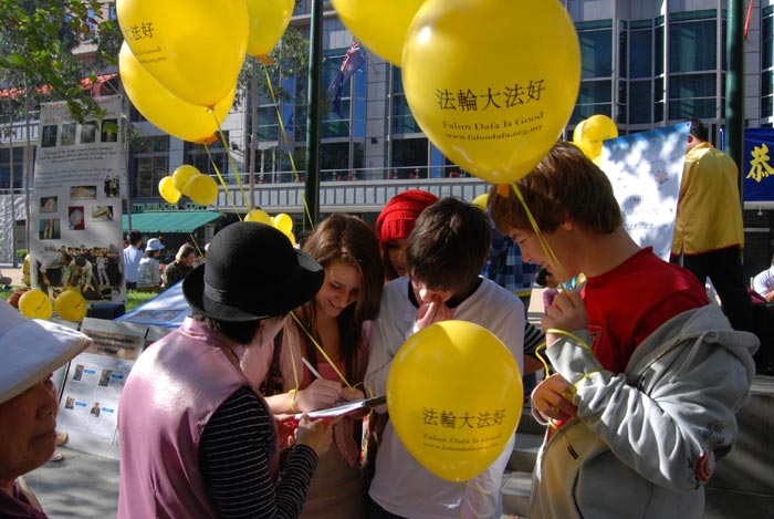 有一群生在中国大陆、在澳洲长大的年轻人,在学员的解释下,他们也都表示明白了。有一位小男孩说有机会他一定会告诉那些来自大陆的朋友们法轮功真相。