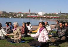 ![]() 五月十三日清晨北欧学员在和煦的阳光下炼功 |