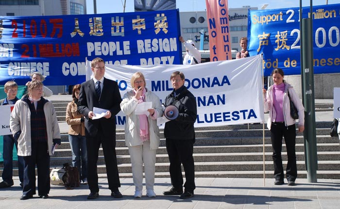 芬兰“退!党!服务中心”代表汉努•亚尔文恩(Hannu J rvinen)表示,发生在中国的退!党!大潮,的确能够改善中国的人权情况。目前, 在中国,对法轮功的迫害,是中国人权最严重的问题,因此,对中国人权的改善, 必须正视在中国受到严重迫害的法轮功学员问题。”