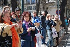 一位年轻的中国人,向游行队伍里发资料的华裔人士说:“这个场面真是很壮观,在中国,人们根本不知道这样的事情。”有的人拿着准备参加歌曲大赛而准备的不同国旗, 随着鼓点摇晃着。一路上,许多路人拿起了照相机,拍摄这支使人印象深刻的游行队伍。
