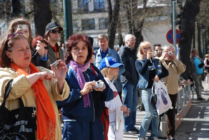 今天,由于一年一度的欧洲歌曲大赛决赛也将在今天见分晓。来自北欧各国爱好音乐的人们,也纷纷来到这里,亲历决赛结果公布的扣人心弦的那一刻。因此市中心人非常多。鼓声阵阵,游行民众喜气洋洋,庆祝中国所发生的退!党!大潮。游行吸引着大量群众观看。有的人远远听到鼓声,口号声,马上从马路的另一边跑过来观看。