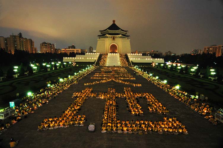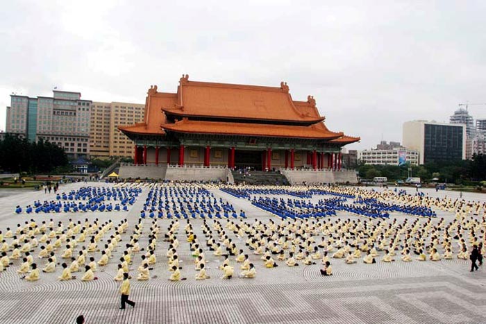 ![]() 二零零零年台湾法会期间在中正纪念堂炼功排字 |