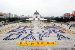 ![]() 二零零五年一月八日中正纪念堂广场排字「正法」「FALUN DAFA」 |