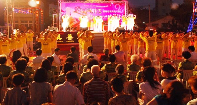 ![]() 法轮功学员受邀在嘉义朴子市庆祝母亲节晚会上演示功法 |