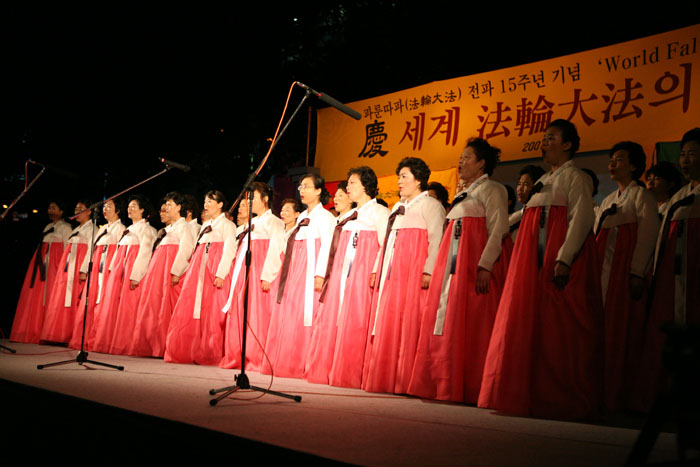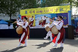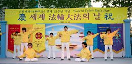 庆典由韩国各地的法轮功学员和其它一些团体的精彩文艺演出组成。首先登场的是非常轻快的韩国传统农乐舞,接下来是介绍法轮功和功法演示、明慧学校学生的小提琴演奏和诗朗诵、传统鼓艺表演、舞蹈和舞剧、天国乐团演奏和合唱等节目。
