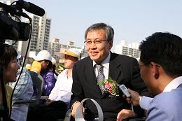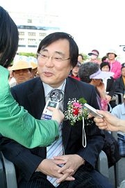 大邱市城区议会议员李东润先生表示:“一位法轮功学员是我的老朋友,所以我知道这是一部有益身心的好功法。”他还说:“祝贺世界法轮大法日, 希望大法广传,让更多的人能知道法轮大法利益身心,再一次祝贺晚会成功。”