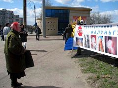 一位知识份子模样的男子开始带着疑惑,久久的看着横幅和资料,向法轮功学员们提了很多问题,最后说:现在形势很复杂,俄罗斯媒体一直都不敢真实报导法轮功,而你们却坚持讲真相,我尊敬你们的诚实和勇气。