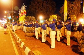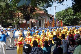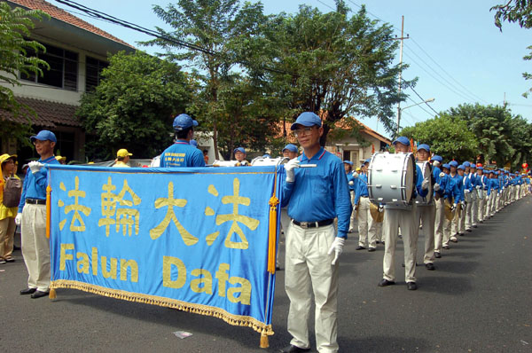 泗水近几年的市庆游行,法轮功团体均在受邀之列,花车游行和仙女舞蹈表演广受欢迎,曾获得泗水市长的嘉奖。今年,印尼法轮功学员还特意邀请了台湾的天国乐团一百七十余人来泗水现场表演。而来自雅加达、棉兰、巴厘岛、巴淡岛等印尼各地的法轮功学员组成的腰鼓队、旗队和仙女队一同参加表演,是历年规模最大、人数最多的一次。