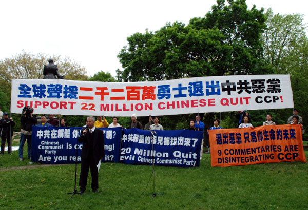 ![]() 多伦多声援二千二百万人退出中共及相关组织的集会现场 |