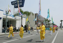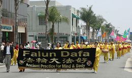 【明慧网二零零七年五月二十一日】二零零七年五月十九日,美国南加州蒙特利公园(Monterey Park) 市举行庆祝建市九十一周年大游行。洛杉矶法轮功学员参加了游行,向大众展示真善忍的美好。游行结束后,法轮功队伍获得花车一等奖、舞蹈二等奖。