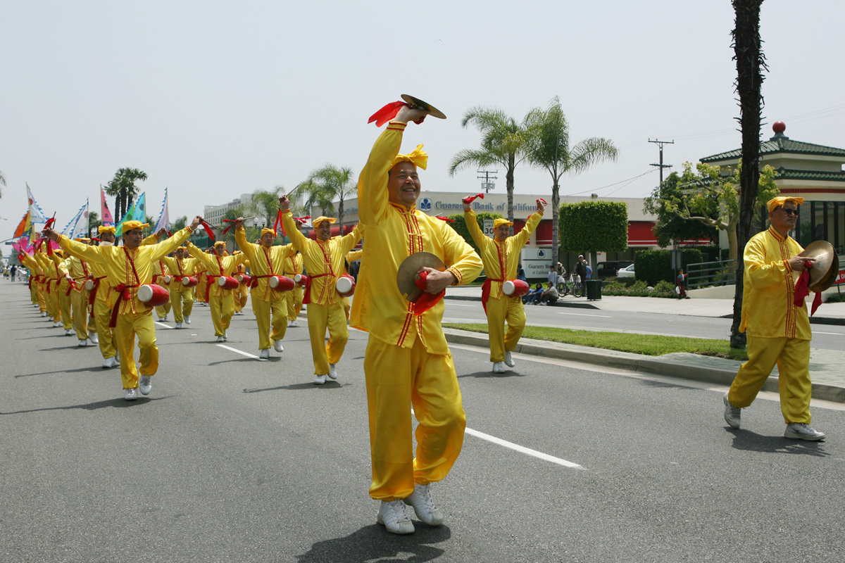 法轮功队伍以天国乐团开路,雄壮的乐曲震撼着人们的心灵;仙女队轻歌曼舞,展示着中国舞的韵味;炼功队伍演示着法轮功功法,舒展祥和;腰鼓队精神昂扬,令人振奋。两个小时的游行中,“法轮大法好”的歌声乐曲一直响彻五大道。人们微笑、鼓掌、挥手、竖大拇指、拍照、摄影,为法轮功喝彩、欢呼。