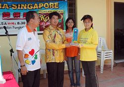 ![]() 马来西亚法轮大法学员组成的女子龙舟队从拿督古乃光律师手中领取季军奖牌 |