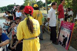 ![]() 法轮功学员在锦标赛期间向民众讲真相 |