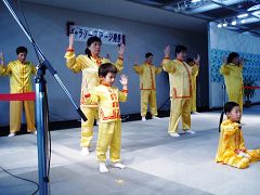 两天中,法轮功学员进行了功法演示、真相图片展示、折莲花等活动。