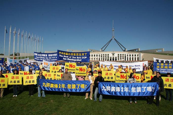 集会宣读了澳洲民主党参议员娜塔莎•斯托特•德斯珀雅(Natasha Stott Despoja)的支持信,信中表示说:中共政权必须懂得民主、自由、人权的理念不是用来维护集权统治的筹码,大规模的退!党!运动已经向中共政权发出了一个强烈信息--在中共的集权统治下中国民众正在觉醒。她还表示对人民的力量终将赢得最后胜利没有丝毫怀疑。