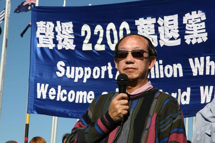 ![]() 退!党!服务中心代表钟萍在集会上发言 |