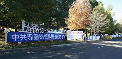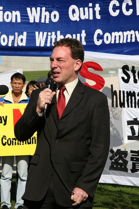 他高度赞扬了法轮功团体对中国道德体系回升、民众觉醒拒绝中共的独裁暴政所起的巨大作用。他呼吁共产党内正直的人士认清中共的罪恶本质,早日退出这个邪*党-。