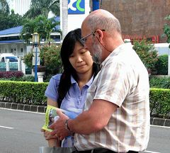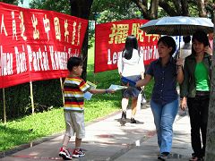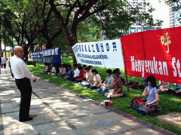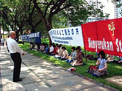 一位路过的西方人说:是法轮功,我知道法轮功。并向学员点头微笑。