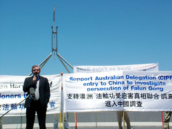 ![]() 澳国会参议员安德鲁·巴特莱在澳洲真相调查团成立集会上发言 |