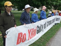 ![]() 法轮功学员在外交部外抗议薄熙来暴行,左一为辽宁藉受害人赵玉 |