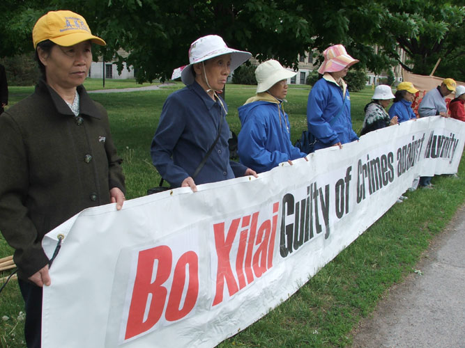 薄熙来是跟随中国副总理吴仪出访北美的第二名因迫害法轮功而被控告的中共高官。五月二十五日,中共信息产业部部长王旭东在美国首都华盛顿DC被法轮功学员递交诉状。被称为“人权恶棍”的薄本人在美国遭到抗议,在此之前他已在美国、英国、德国、爱尔兰、新西兰、俄罗斯、澳大利亚、韩国、西班牙、瑞典等十几个国家被法轮功学员以反人类罪、酷刑罪等告上法庭。