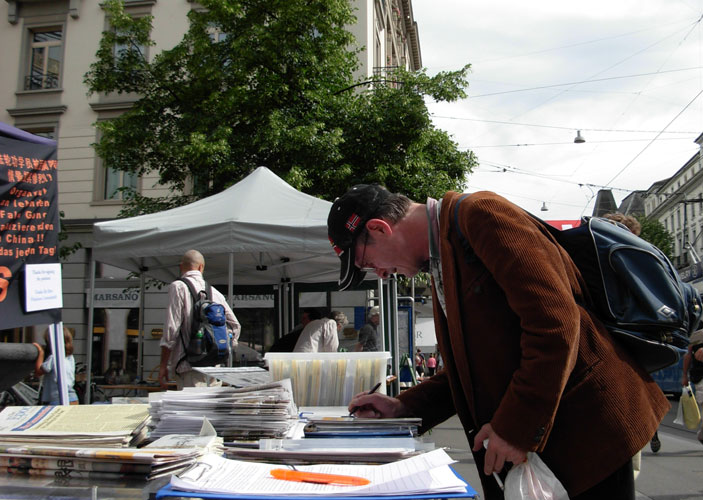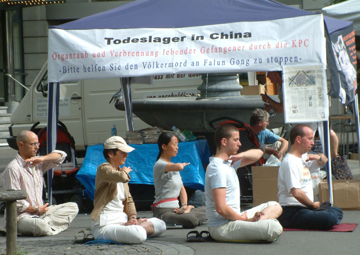 两位女士的表情由疑惑,到惊讶,到不忍,她们说,这一切迫害简直是太糟糕了,并问该如何帮助法轮功学员?学员告诉他们,可以签名呼吁瑞士政府和联合国调查活摘器官的罪行,也可以将她们所了解的关于中共迫害法轮功的罪行告诉更多的人,让他们不受中共谎言的欺骗,这对被迫害的法轮功学员而言也将是一个很大的帮助。