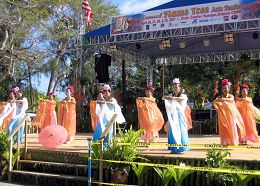 法轮功学员还申请到了两次上台表演的机会。在星期六下午的表演中,宁静祥和的功法演示深受欢迎,而古装大唐舞蹈的音乐刚一响起,就已经博得了观众的阵阵掌声,大法的美好和修炼者健康向上的风貌深入人心。在星期天早上表演功法的时候,台上的主持人站在学员们的后面还一起炼起了法轮功。经过与主办者商量,学员们的大唐舞蹈表演安排在了晚上八点的黄金时段,让更多的人们有机会观赏到。