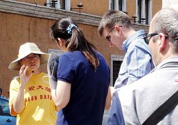 一位意大利人说他相信对真善忍的态度、对邪*党-的态度便可决定人的未来,他说他会尽力告诉他所认识的人,使他们了解真相。