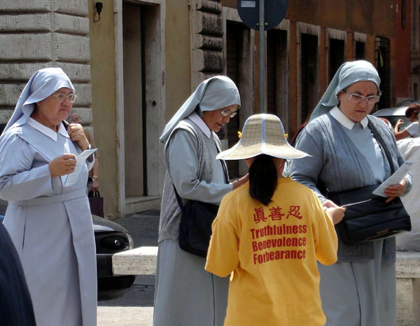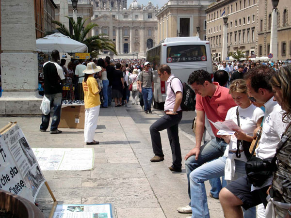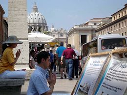 ![]() 法轮功学员在梵蒂冈圣彼得大教堂前的协约大道洪法讲真相 |