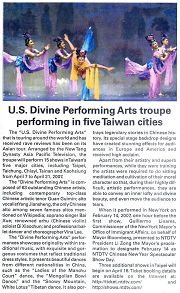 除了艺术成就和高超的表演,这些艺术家在生活中还进行(法轮功)打坐并修炼自己的道德品质,在演出中他们能传递一种内在的高尚和圣洁的美。这种美往往感动得观众们落泪。