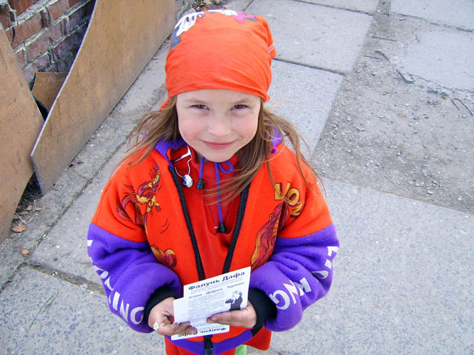 ![]() 帮法轮功学员发资料的乌克兰小姑娘 |