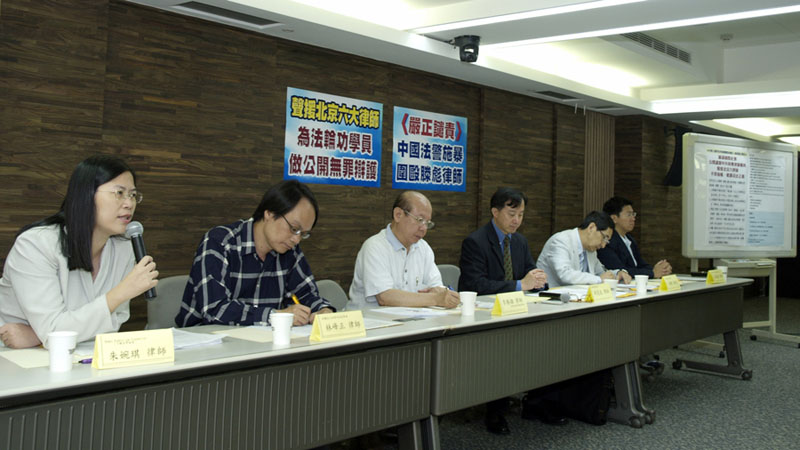 ![]() 台湾律师界与人权界等多个团体代表于五月五日联合召开记者会, 声援在中国替法轮功学员辩护的六位北京律师。 |