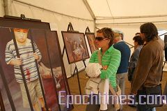 ![]() 在布拉格的莱特纳公园举行的反对共产主义的大型集会现场一个帐篷内,人们在观看法轮功学员举办的以揭露中共对法轮功的迫害为主题的画展 |