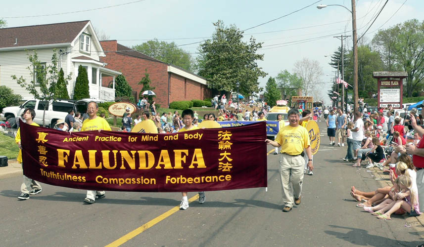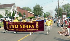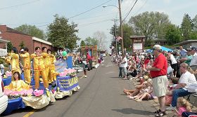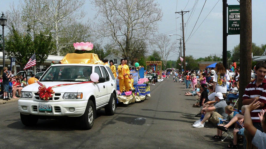 【明慧网二零零七年五月八日】美国密苏里州佛罗瑞森市(Florissant)每年五月初都会举办花谷节(Valley of Flowers)游行,多姿多彩的上百个游行队伍给这个春天的节日增添无限欢乐和喜庆。二零零七年五月六日,法轮功学员第六度参加了这个活动,祥和的功法、精美的花车、蓬勃的朝气如往年一样赢得了观众们的热烈欢迎和喝彩。“法轮大法”、“真善忍”的横幅和牌匾则把大法的福音和法轮功学员的祝福带给了沿途数千名热情的观众。