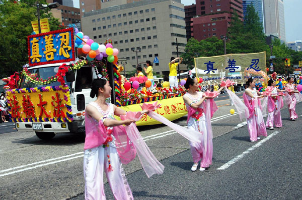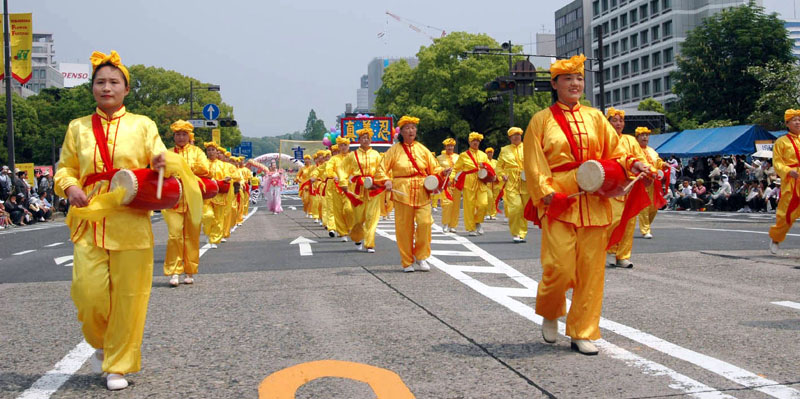 黄金周日本福冈大游行 法轮功真相深入人心(图)