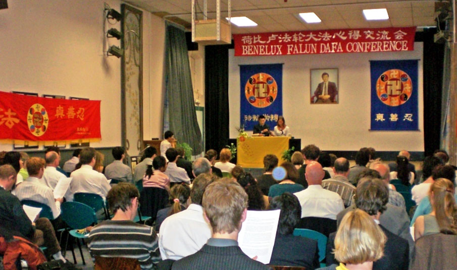 两位法会主持人用法语、荷兰语、英语和中文四种语言宣布第三届荷比卢法轮大法修炼心得交流会开始。十一位中、西方学员与大家分享了他们在修炼和证实法中的体会。法会的发言稿也是用四种语言准备的。