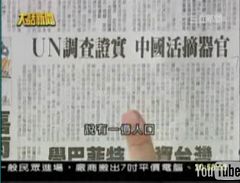![]() 主持人郑弘仪接着拿出报纸刊载中共活摘法轮功学员器官的报导,请教张清溪教授:“这是真的?如果是真的那真的是太恐怖了! |
