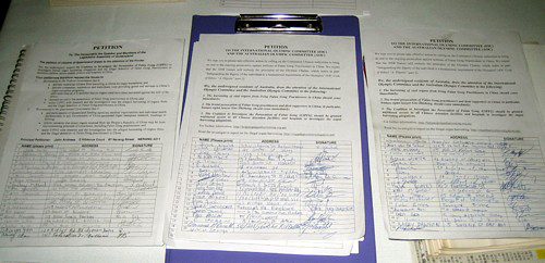 ![]() 许多参观者看了画展后签名支持反迫害 |