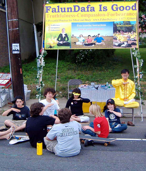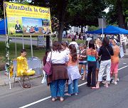 ![]() 人们对法轮功很感兴趣,纷纷来了解详情 |