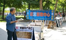 在真相展摊位帮忙的王先生向记者介绍说,今天真是人山人海的,很多游客主动过来取资料,有些人拿了资料后,还询问有没有更多的资料。