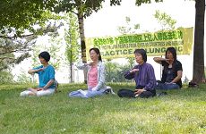 记者问他今天参加这个活动有什么感受,他说:“我在这里的公园炼功没人抓我,如果在中国就会被坏人抓了,我不敢在中国的公园炼。”