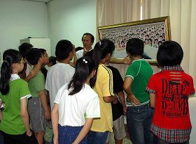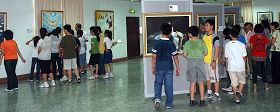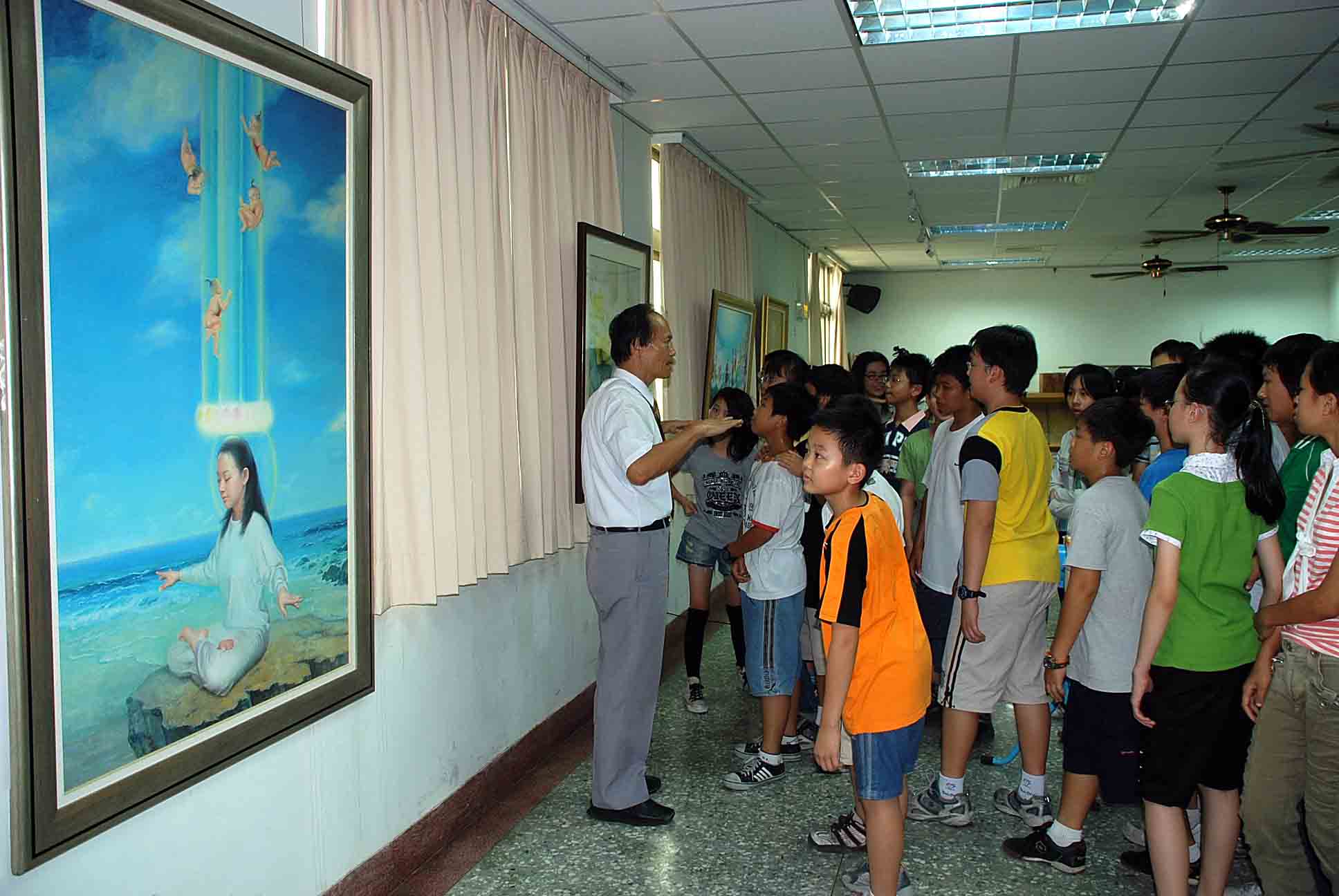 带队的美术老师修炼法轮功已有多年,她说:“真善忍美展来民雄展览,这是当地民众的福份,除了让学生观摩画作的技巧,更重要的是让学生体会法轮大法的内涵。”