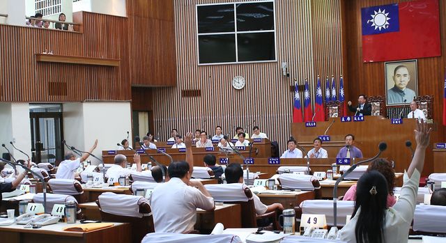 ![]() 台南县议会临时会中,议员举手表决通过谴责中共活摘器官暴行的临时提案 |