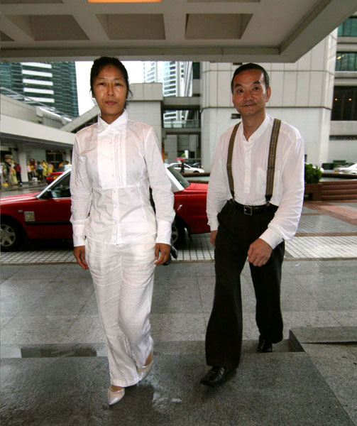 ![]() 朱柯明(右)和傅学英步入香港高等法院 |