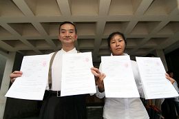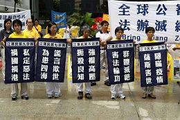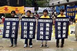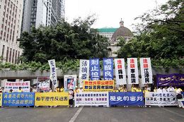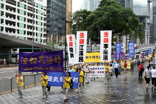 ![]() 声援朱柯明和傅学英的法轮功学员,由金钟的高等法院游行到中环遮打花园 |