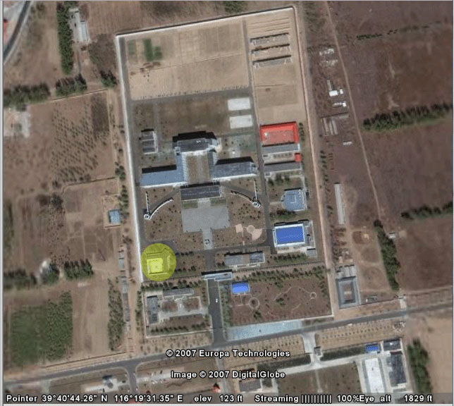下图是臭名昭著的所谓“法制培训中心”的卫星影像,黄色部份是一幢三层小楼--许多法轮功学员就是在这里遭受残酷折磨迫害。